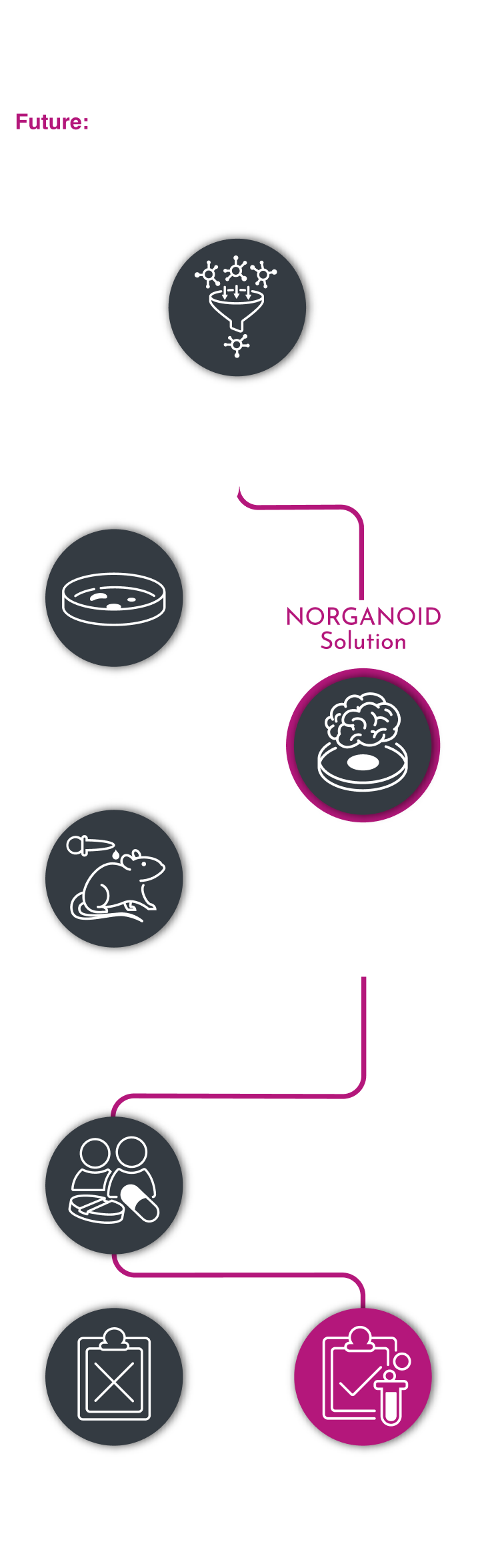 Present: The current drug discovery and development processes involve non-human disease models which lead to drug failures and patient suffering.